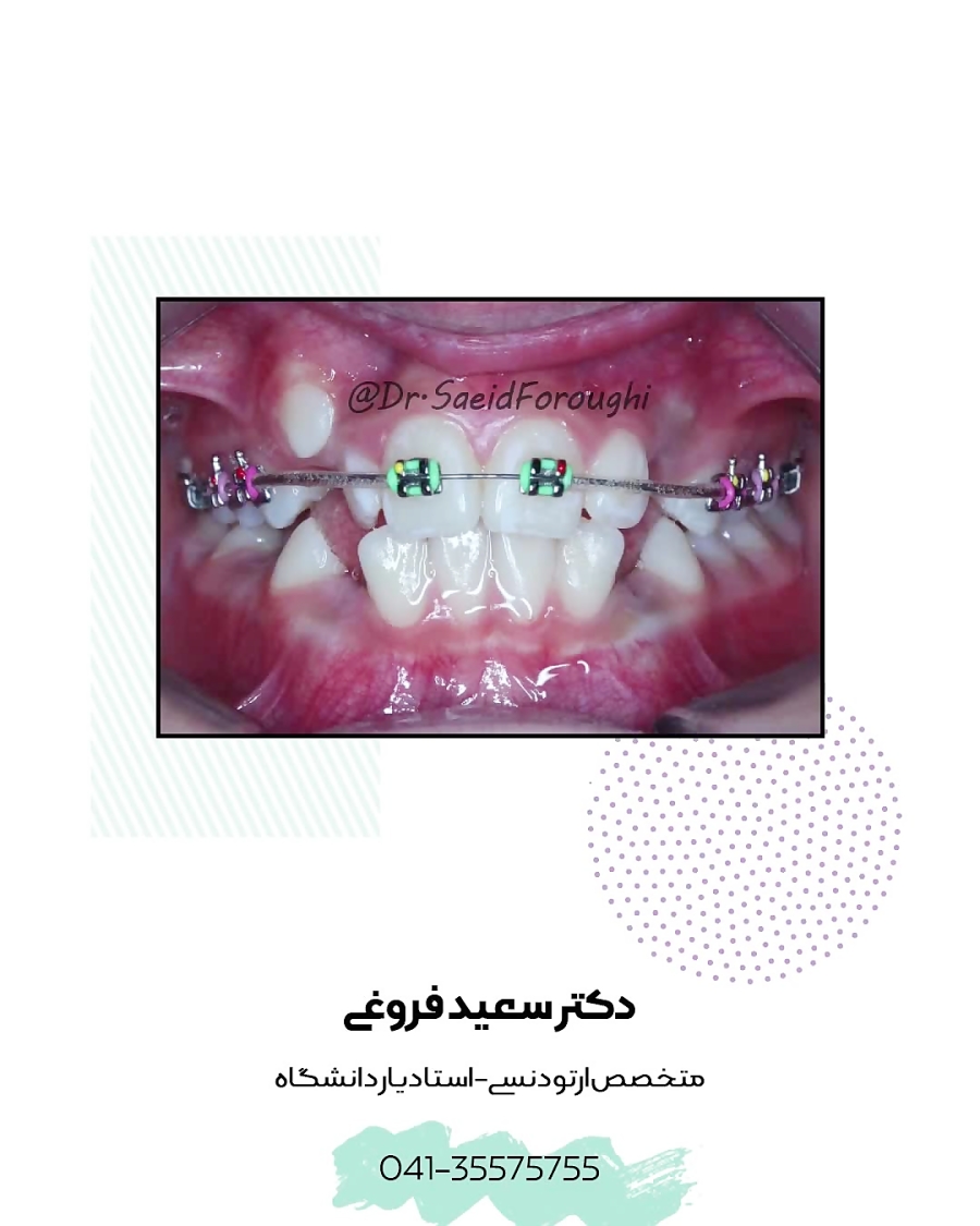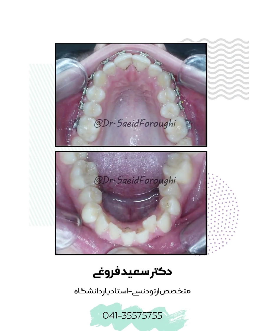 اصلاح ناقرینگی قوس فک بالا و رفع بینظمی دندانها توسط ارتودنسی ثابت