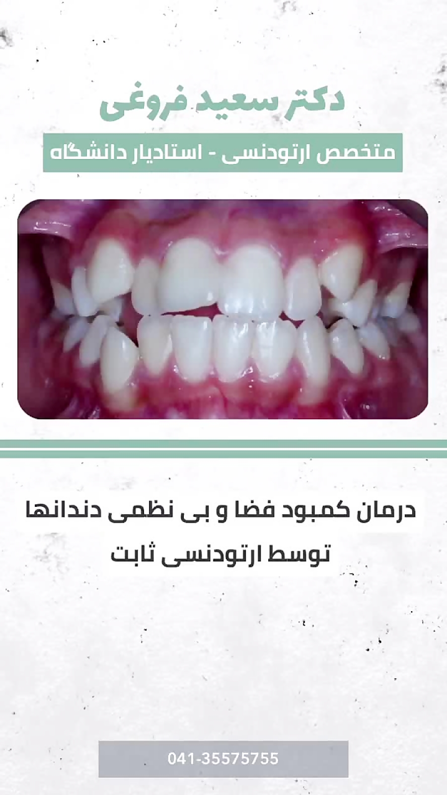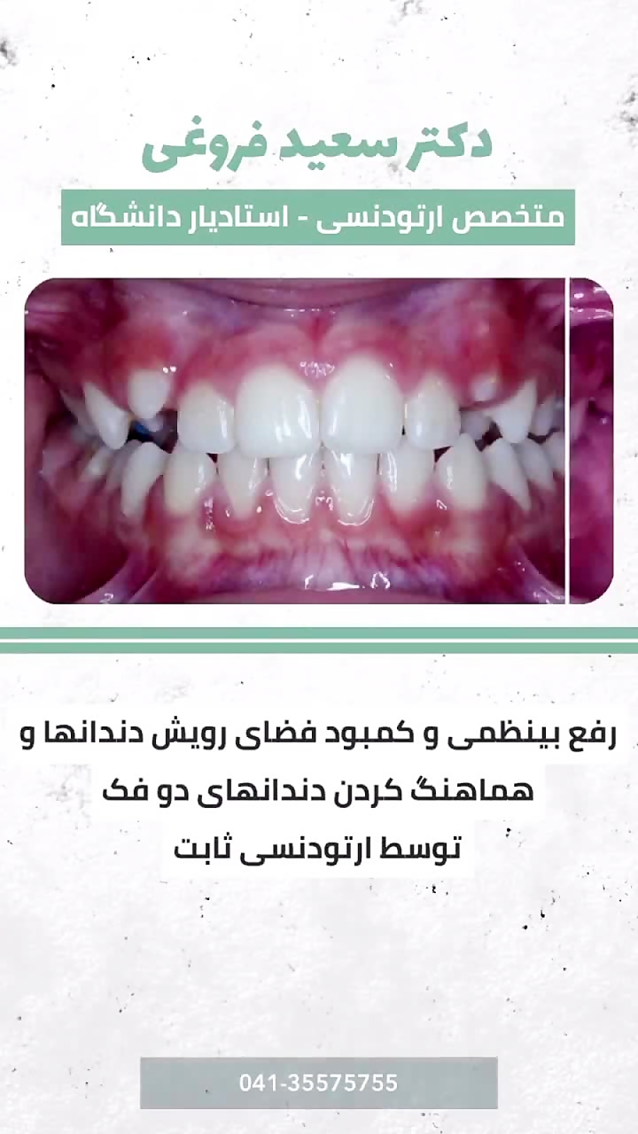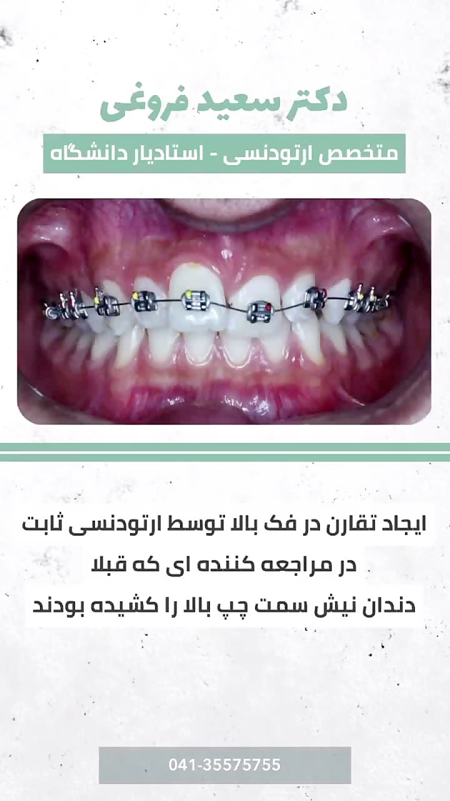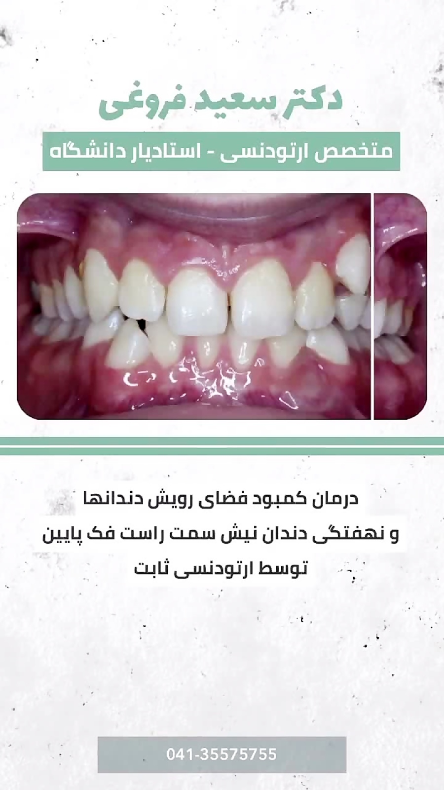 درمان ترکیبی ارتودنسی و جراحی فک جهت اصلاح جلو بودن فک پایین به همراه تنظیم فضاه